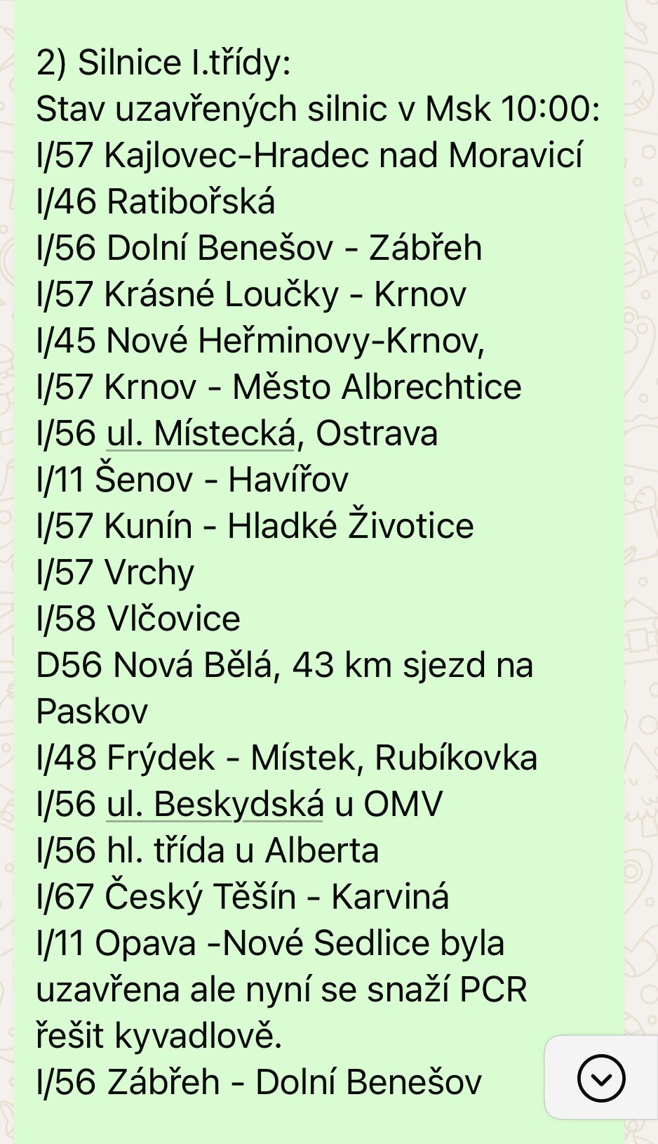 Ačkoli hladiny některých řek začínají klesat, řada silnic, je stále pod vodou, podemletá, nebo zanesená bahnem a kamením. Uzavřená je dál i dálnice D1 u Ostravy.