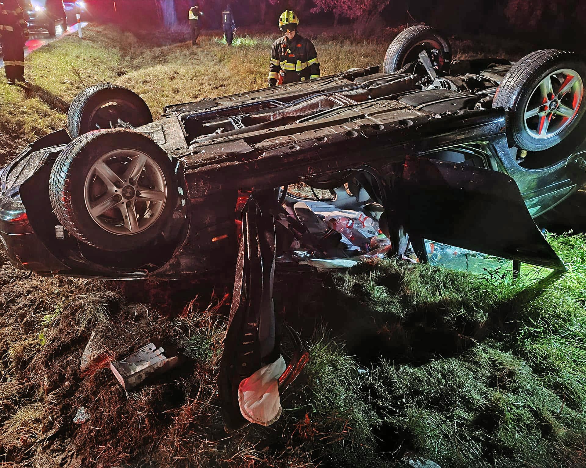 Další vážná nehoda se stala v sobotu brzy ráno na silnici u obce Bonětice nedaleko Boru. Řidič BMW tam vyletěl ze silnice a několikrát se převrátil.
