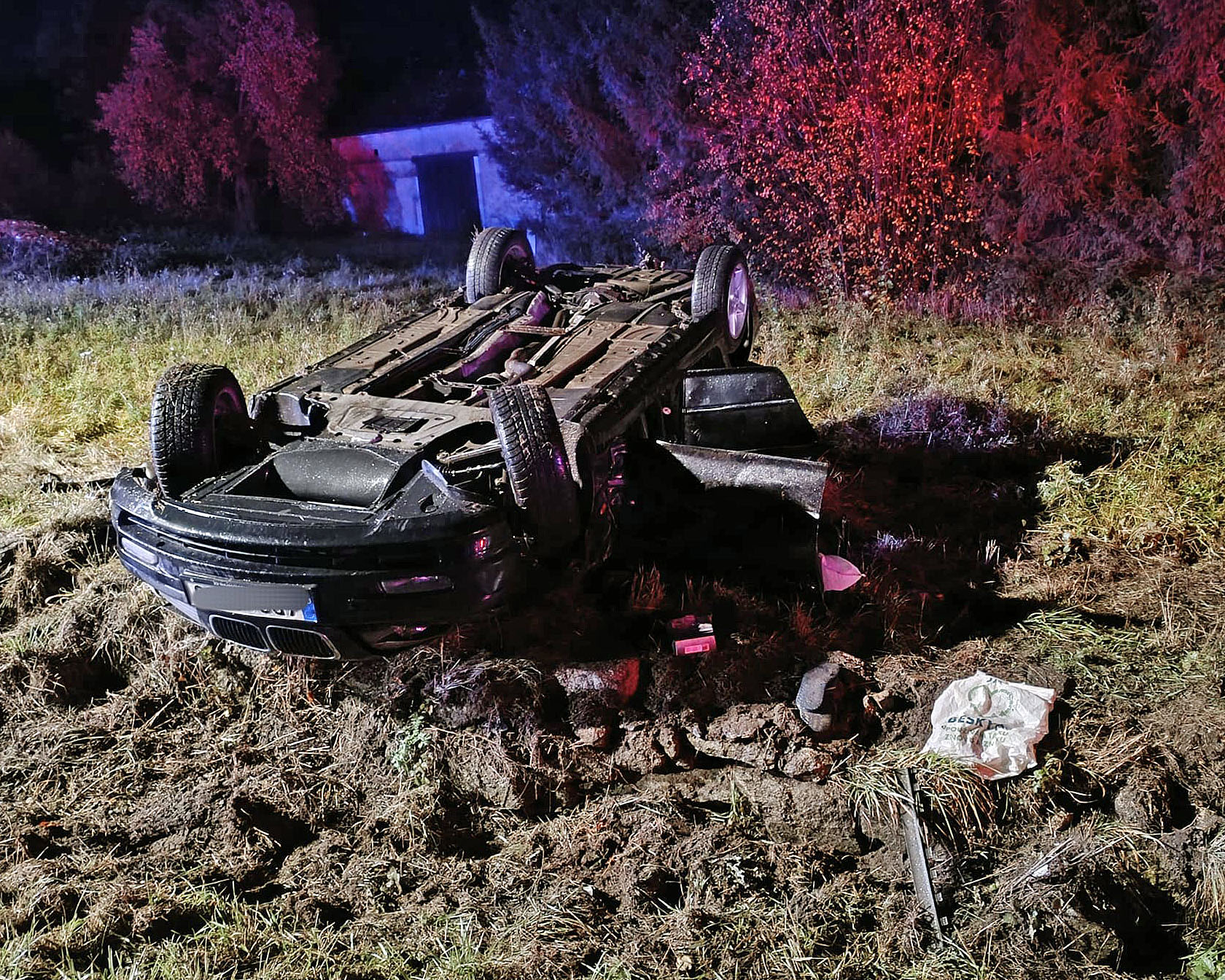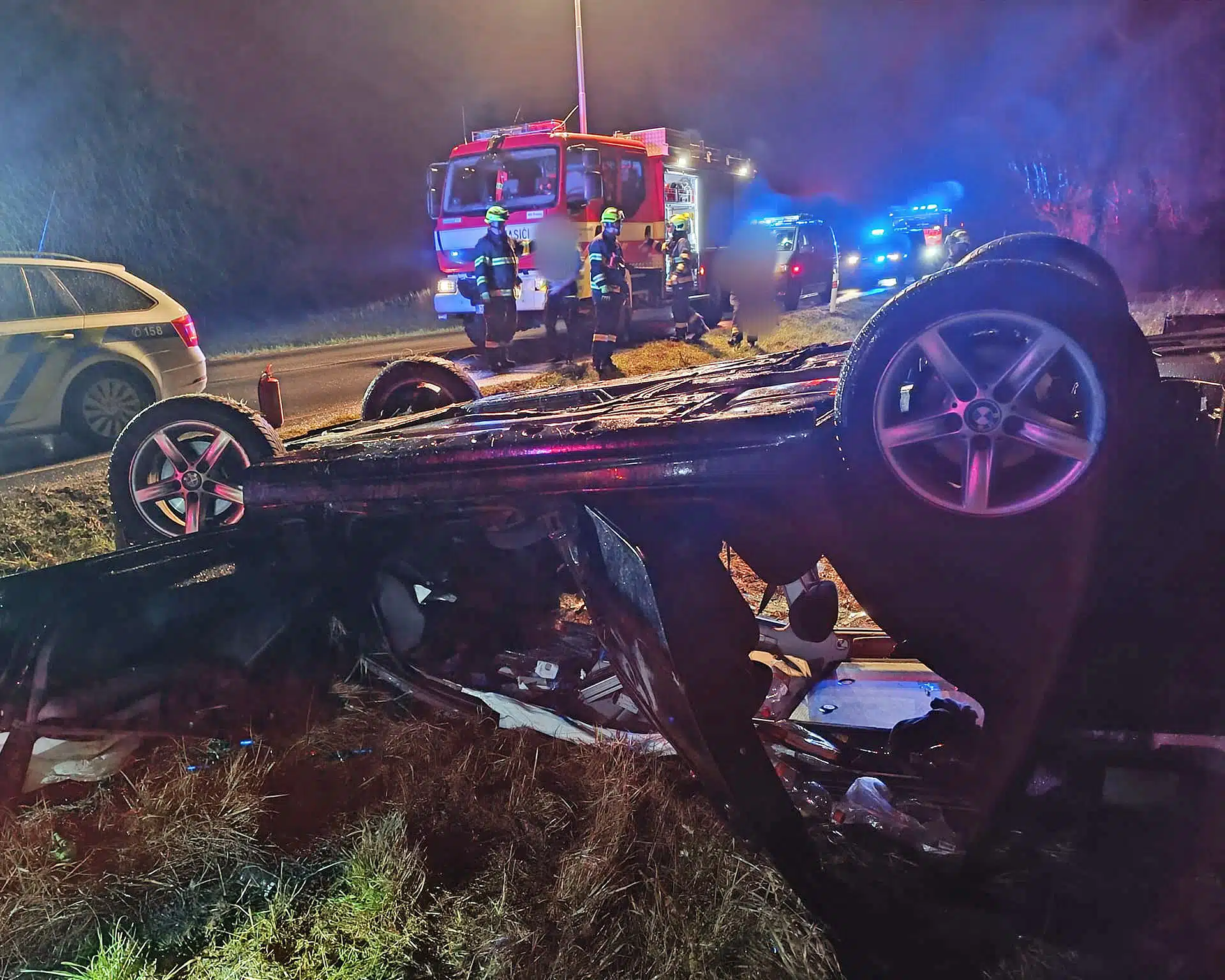 Vůz se několikrát přetočil a skončil převrácený na střeše vedle silnice. Dvaatřicetiletý řidič může mluvit o pořádném štěstí, z nehody vyvázl jen s lehkým zraněním, které mu ošetřili záchranáři.