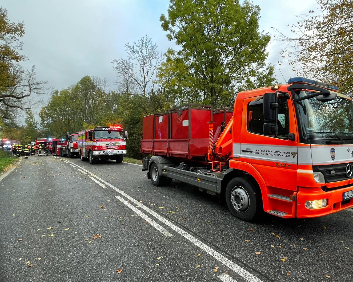 Převrácená cisterna převážela chemickou látku. „Nákladní vůz zajišťujeme, okolí by nemělo být ohroženo. Zasahuje i speciální technika – chemický automobil ze stanice Velké Poříčí, z centrální stanice Hradec Králové vyjel chemický kontejner a kontejner s nádržemi pro přečerpání ropných látek,“ dodali ve středu ráno hasiči.
