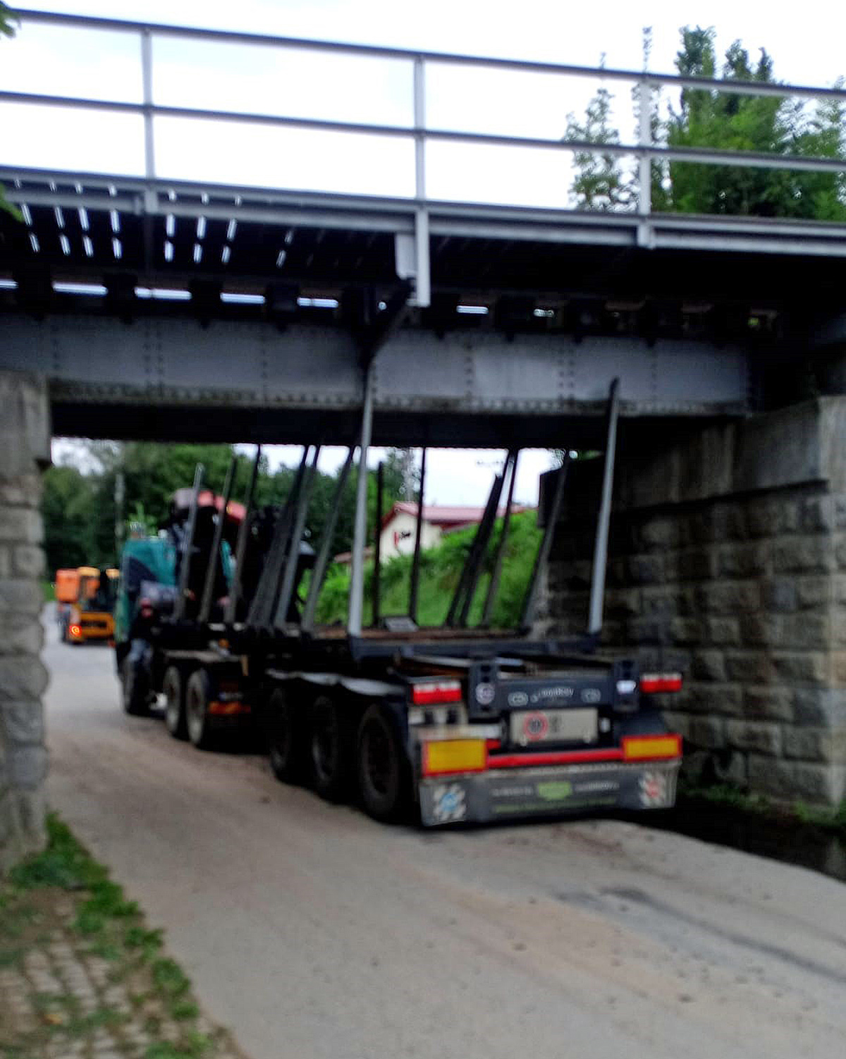 To vyjde, tak ne… Ve Slavonicích se zasekl kamion pod železničním viaduktem