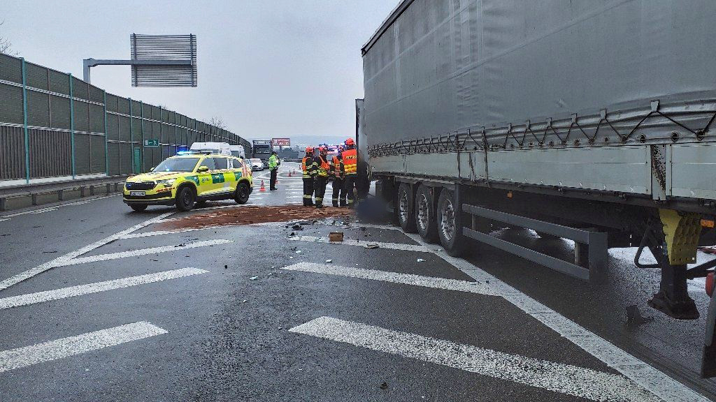 Dálnici D1 v úterý odpoledne uzavřela na 187. kilometru ve směru na Ostravu nehoda dvou nákladních vozů. Jeden z řidičů bohužel zemřel na místě.