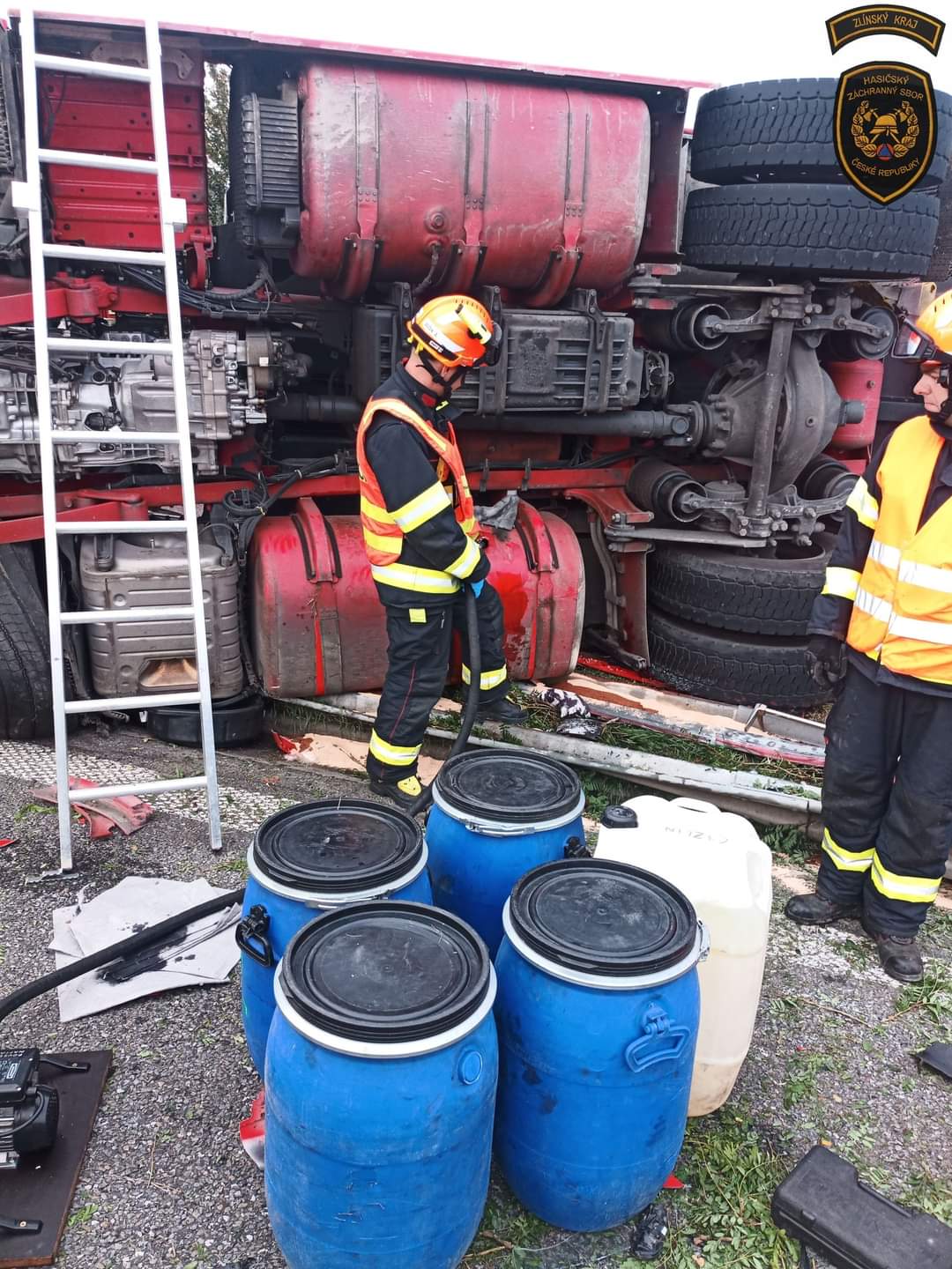 „Při havárii došlo u kamionu, převážejícího plechy a další kovový materiál, k poškození nádrží, ze kterých unikala nafta. Hasiči proto zahájili odčerpávání. Podařilo se jim rychle přečerpat několik set litrů nafty. Ty se tak díky tomu nedostaly do půdy,“ uvedla mluvčí hasičů Lucie Javoříková.