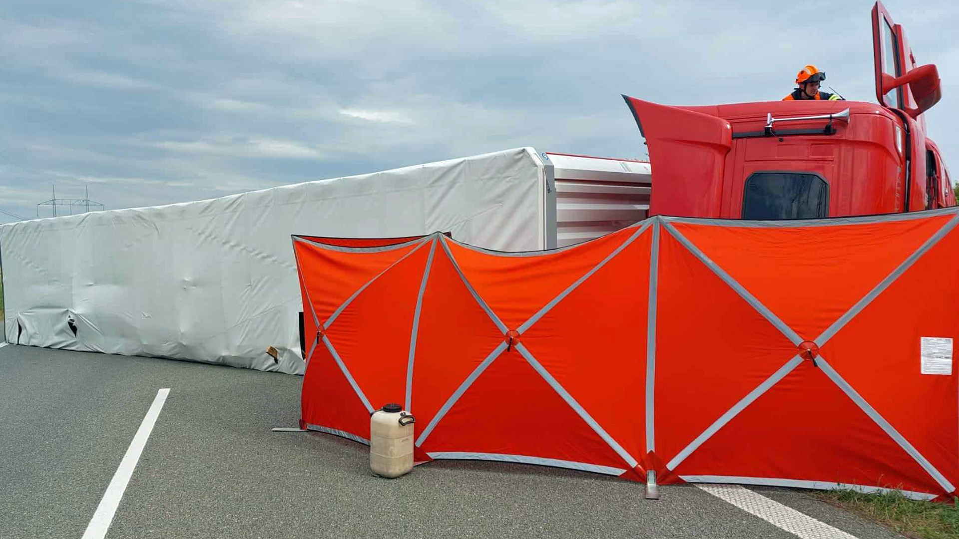 Tragická nehoda komplikuje provoz na dálnici D55 mezi Hulínem a Otrokovicemi. Převrátil se tam kamion na bok. Jeho řidič bohužel utrpěl smrtelná zranění, na místě zemřel.