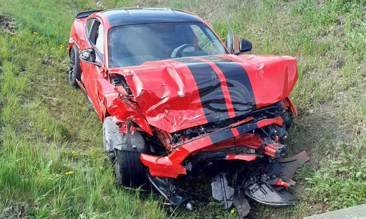 Následovala srážka, Mustang odletěl mimo silnici do odvodňovacího příkopu, druhý vůz, v němž cestoval starší pár, zůstal silně zdemolovaný na silnici. Posádka utrpěla velmi vážná zranění. „Na místě se nacházely dvě těžce zraněné osoby, u kterých zdravotnická záchranná služba okamžitě zahájila resuscitaci. Hasiči poskytovali zdravotníkům součinnost a zajistili místo dopravní nehody,“ sdělil mluvčí HZS Ústeckého kraje Lukáš Faják.