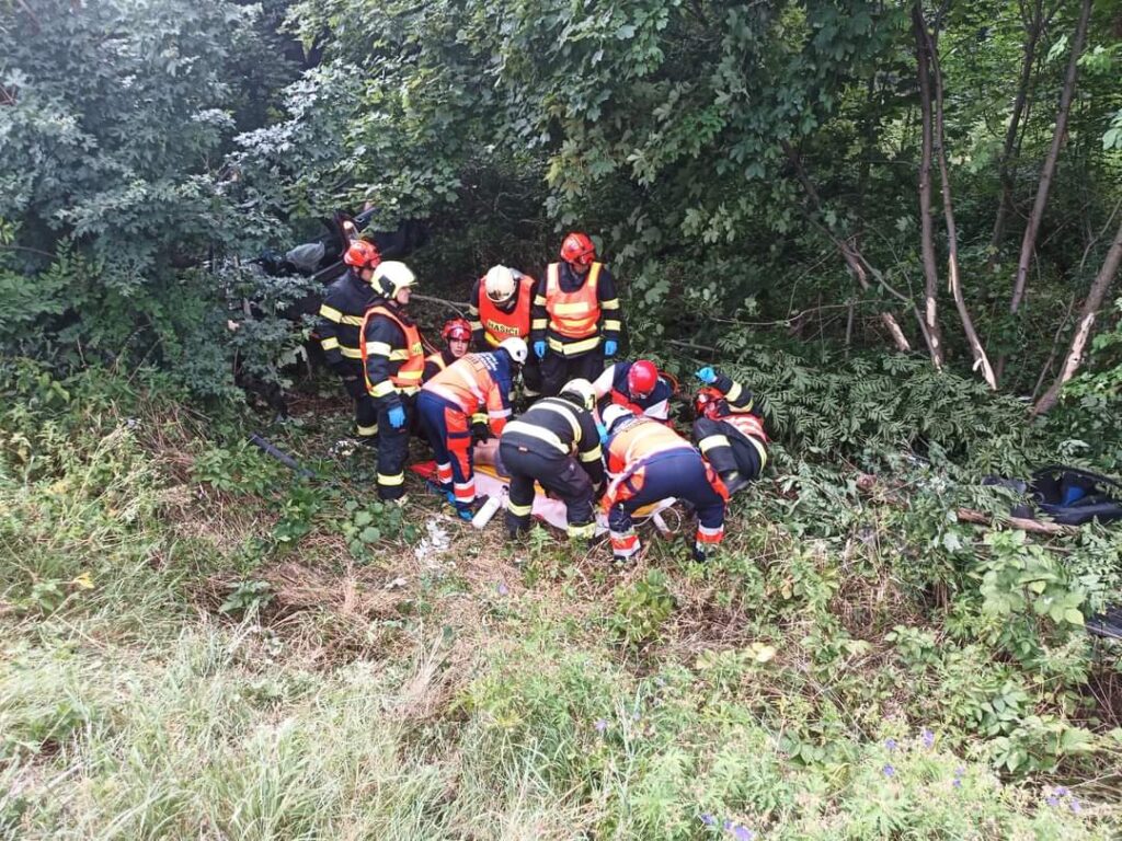 Posádka zdravotnické záchranky si ihned po příjezdu převzala řidiče do péče. Hasiči mezi tím s pomocí hydraulického vyprošťovacího zařízení odstranili druhou řadu sedadel.