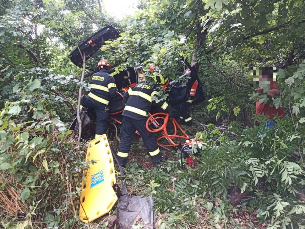 Nehoda se stala za Luhačovicemi v pondělí před půl pátou odpoledne. „Osobní tam automobil vyjel ze silnice, přejel přes okraj svodidel a pokračoval asi 40 metrů, než uvízl mezi stromy. Ve vozidle zůstal zaklíněný řidič,“ informovali hasiči HZS Zlínského kraje.