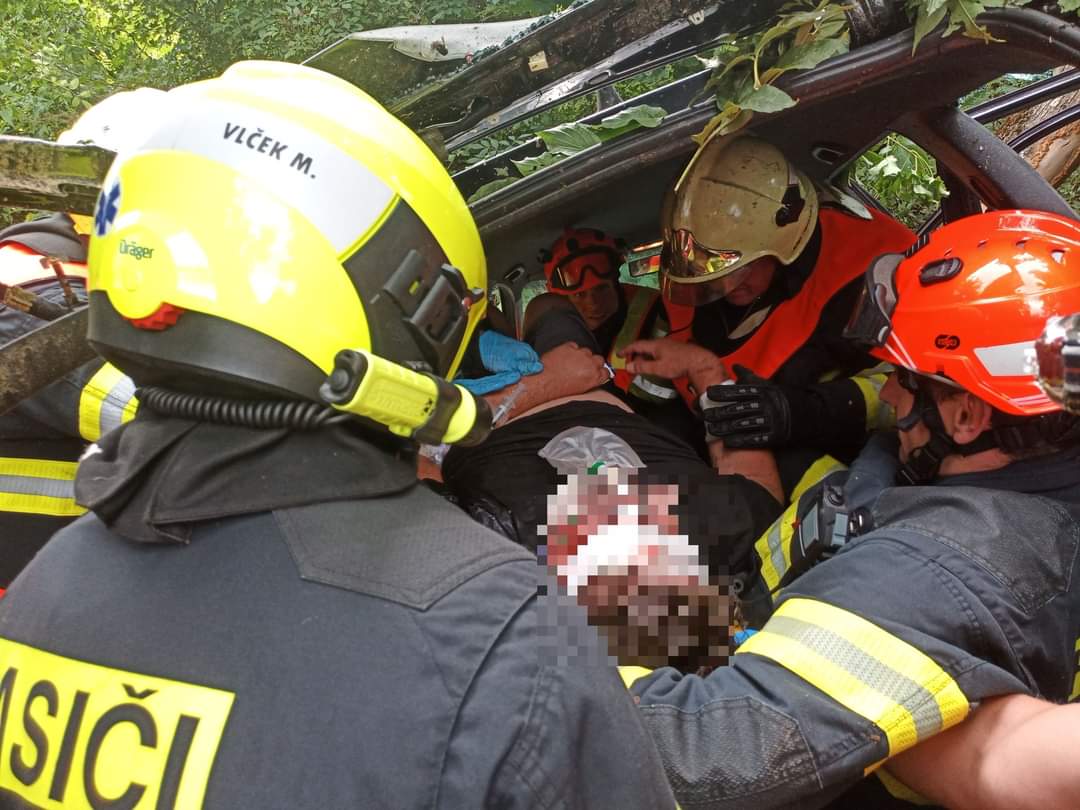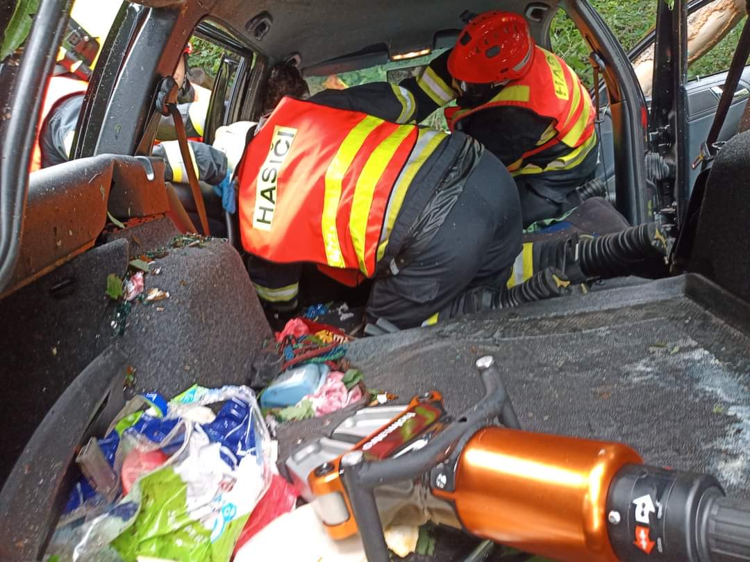 Posádka zdravotnické záchranky si ihned po příjezdu převzala řidiče do péče. Hasiči mezi tím s pomocí hydraulického vyprošťovacího zařízení odstranili druhou řadu sedadel.