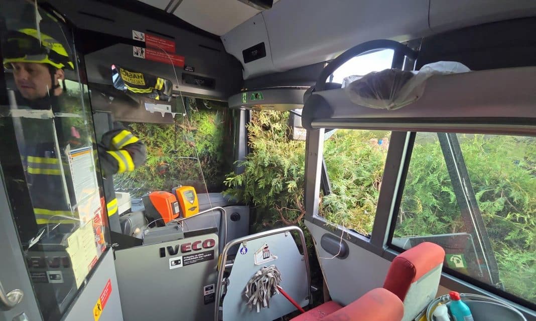 Dopravní nehoda autobusu se stala dnes u Bukovan na Příbramsku. Autobusu po havárii nešly otevřít dveře, cestující tak museli vyprostit až přivolaní hasiči.