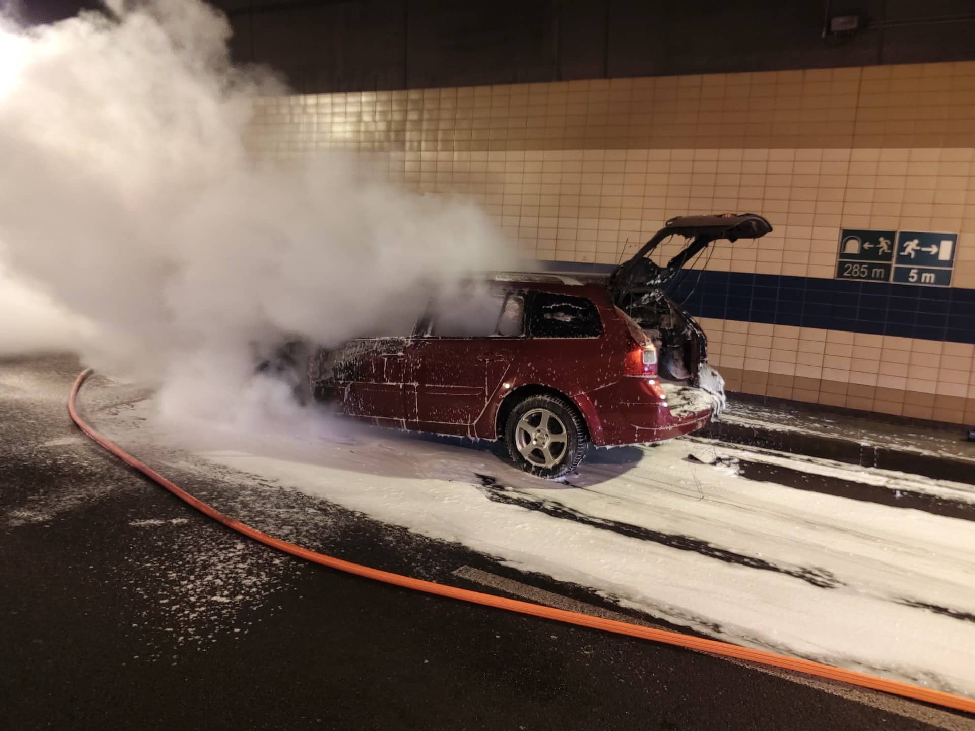 Výrazném komplikace v dopravě způsobil úterní požár osobního auta v Bubenečském tunelu v Praze ve směru na Tróju.