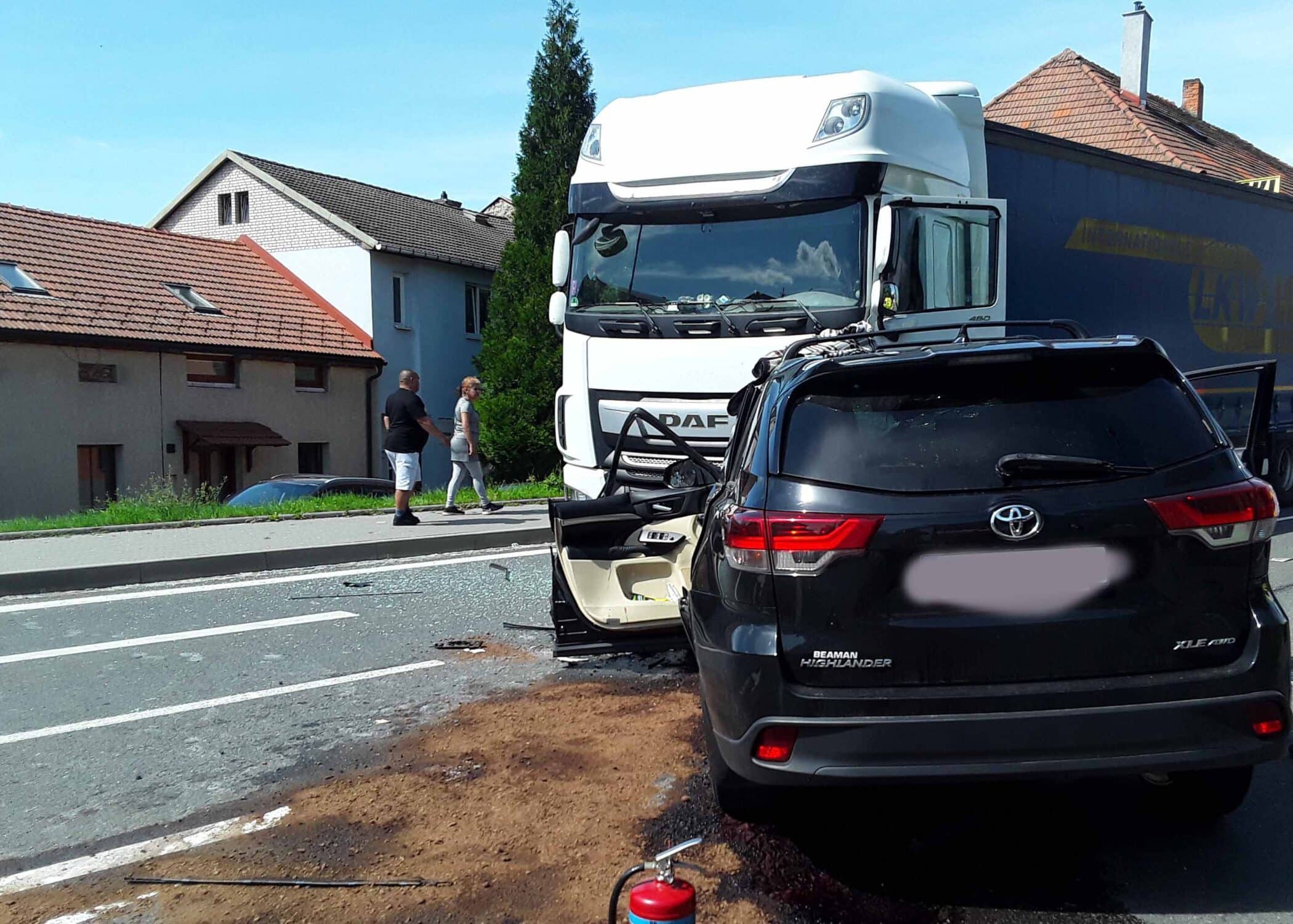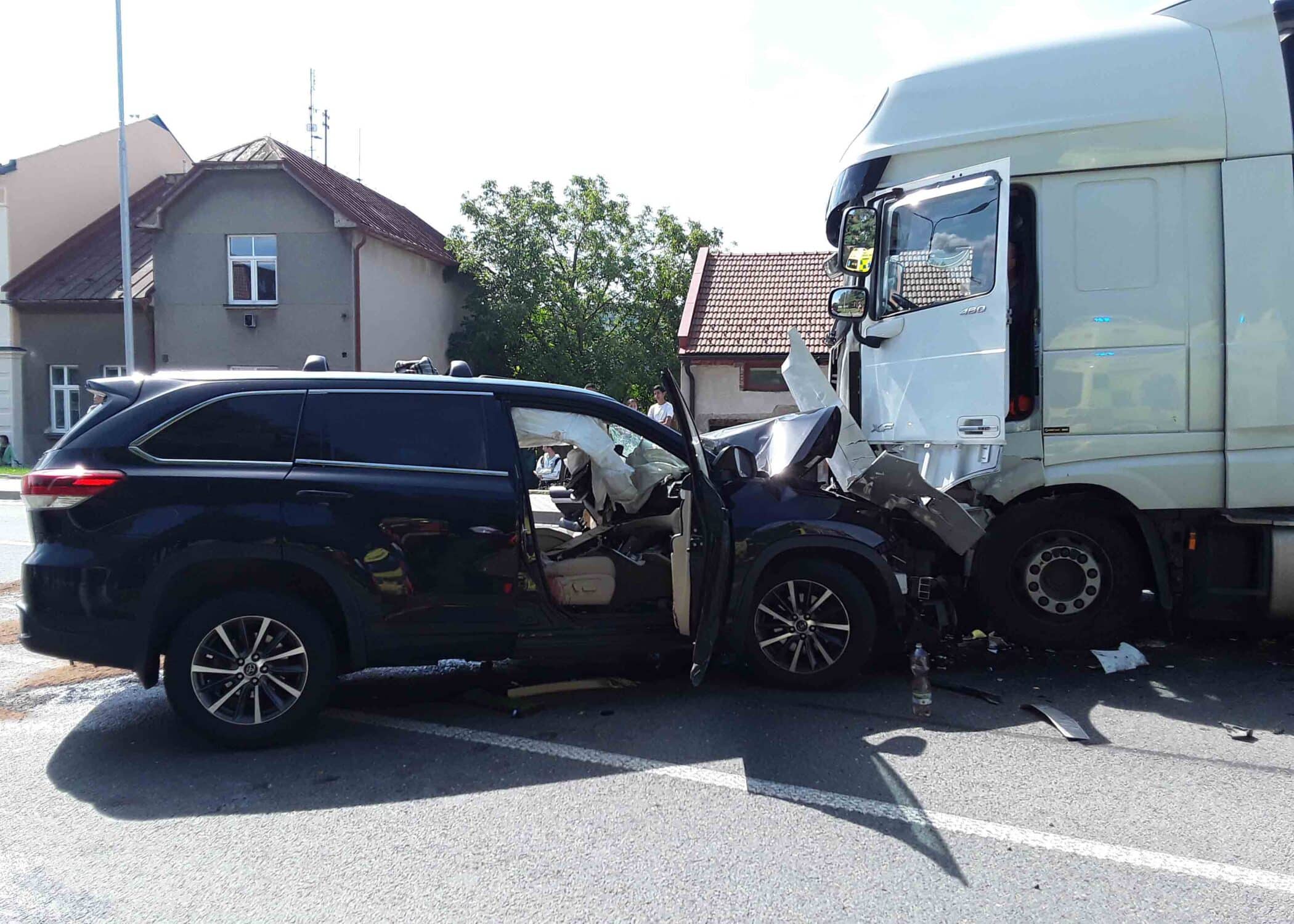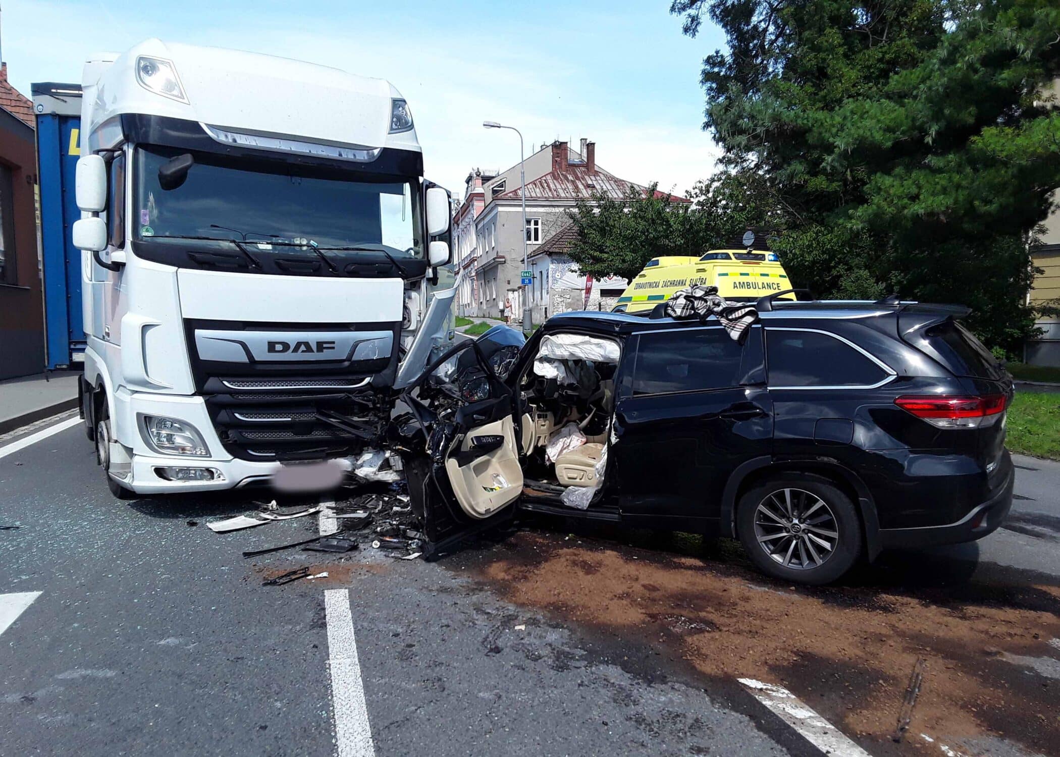 Nehoda se stala v pondělí dopoledne v Hranicích, kde se srazily kamion DAF a osobní vůz Toyota Highlander. Při nehodě se vážně zranil řidič osobního auta, který zůstal ve voze zaklíněný a hasiči ho museli vyprostit.