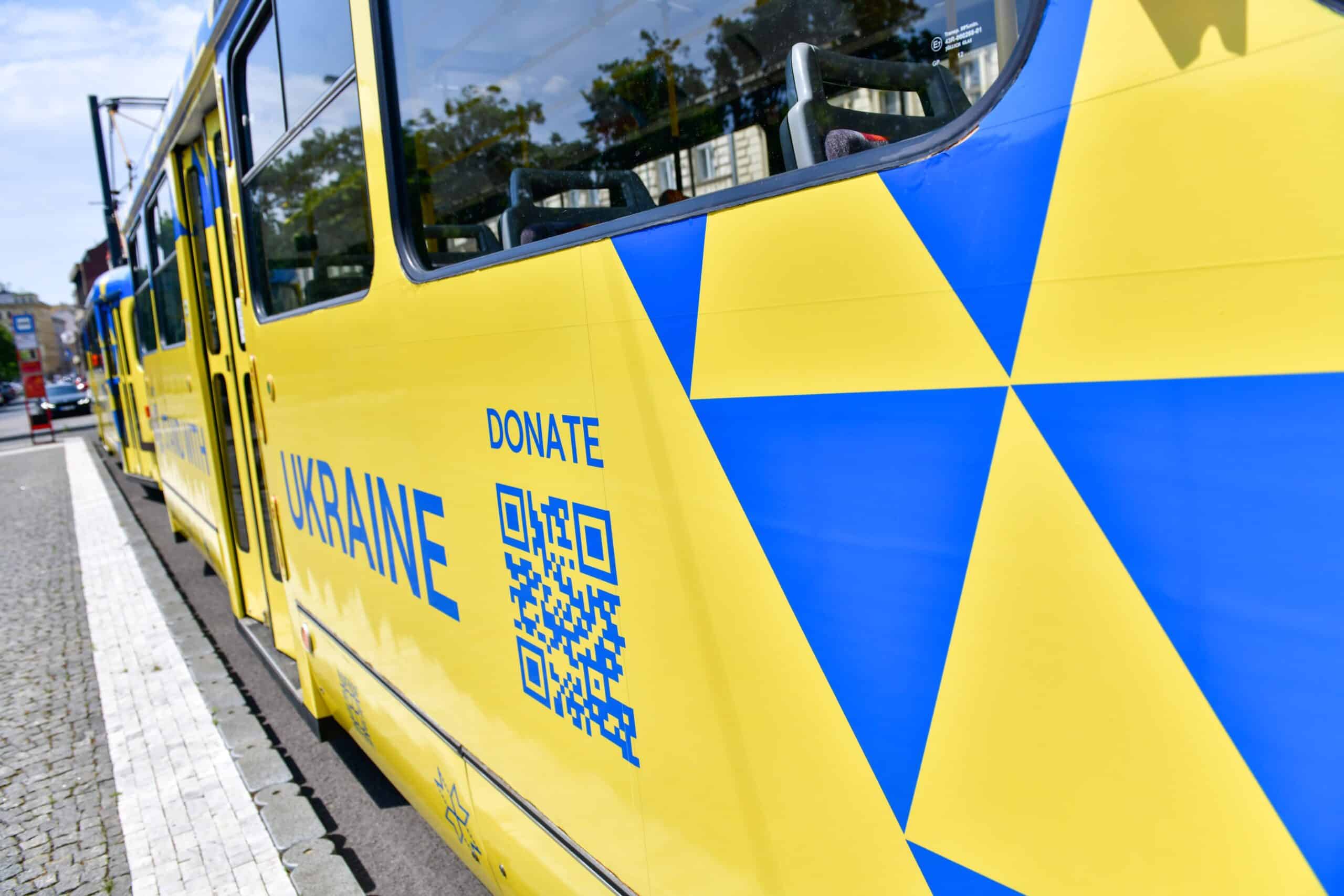 Praha se ve spolupráci s Dopravním podnikem hlavního města Prahy (DPP) symbolicky připojila k projektu #RIDEFORUKRAINE upozorňujícím na ukrajinskou vládní fundraisingovou platformu UNITED24. Proto byla ve středu v Opletalově ulici na trasu slavnostně vypravena souprava tramvají T3R.PV s unikátním designem v ukrajinských národních barvách a QR kódem, který vede právě na web platformy UNITED24.