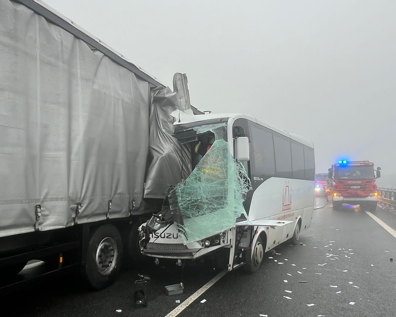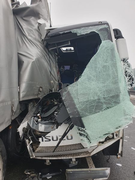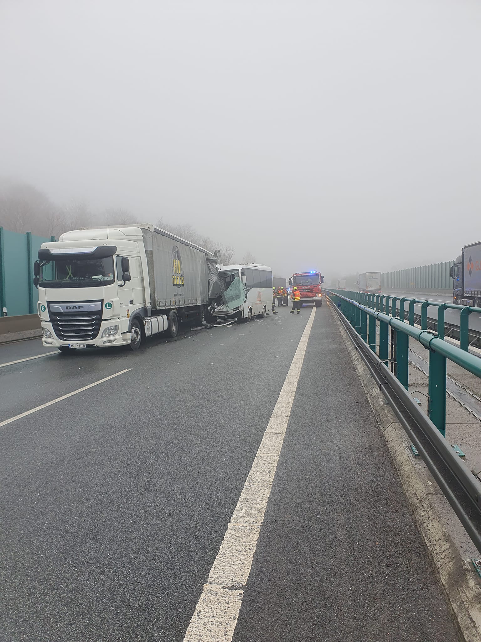 Vážná nehoda na dálnici D8: autobus v mlze narazil do kamionu!