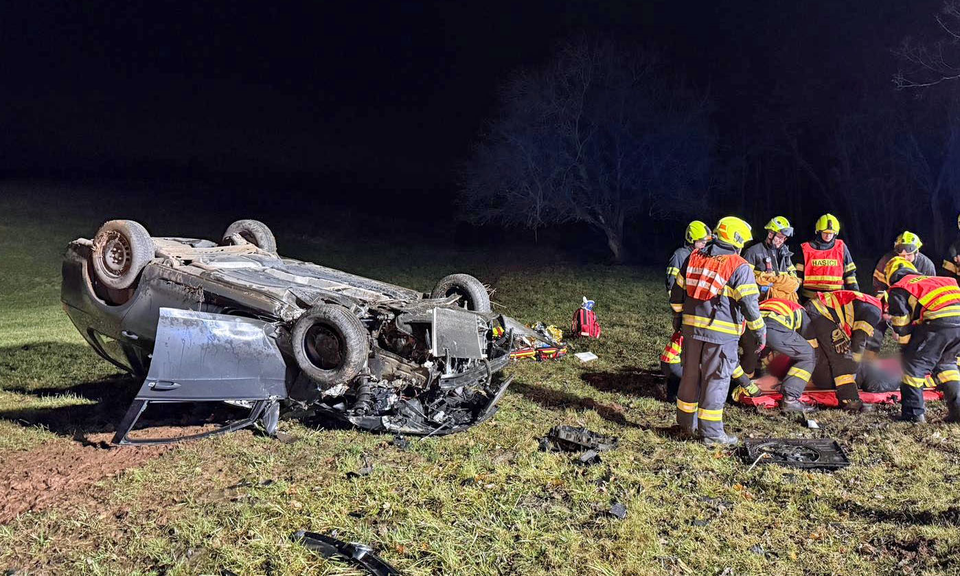 U vážné nehody zasahují záchranáři v pondělí v noci nedaleko Bernartic na Trutnovsku. Na silnici I/16 havaroval řidič s osobním autem do stromu, vůz pak skončil v poli převrácený na střechu. Zasahuje vrtulník.
