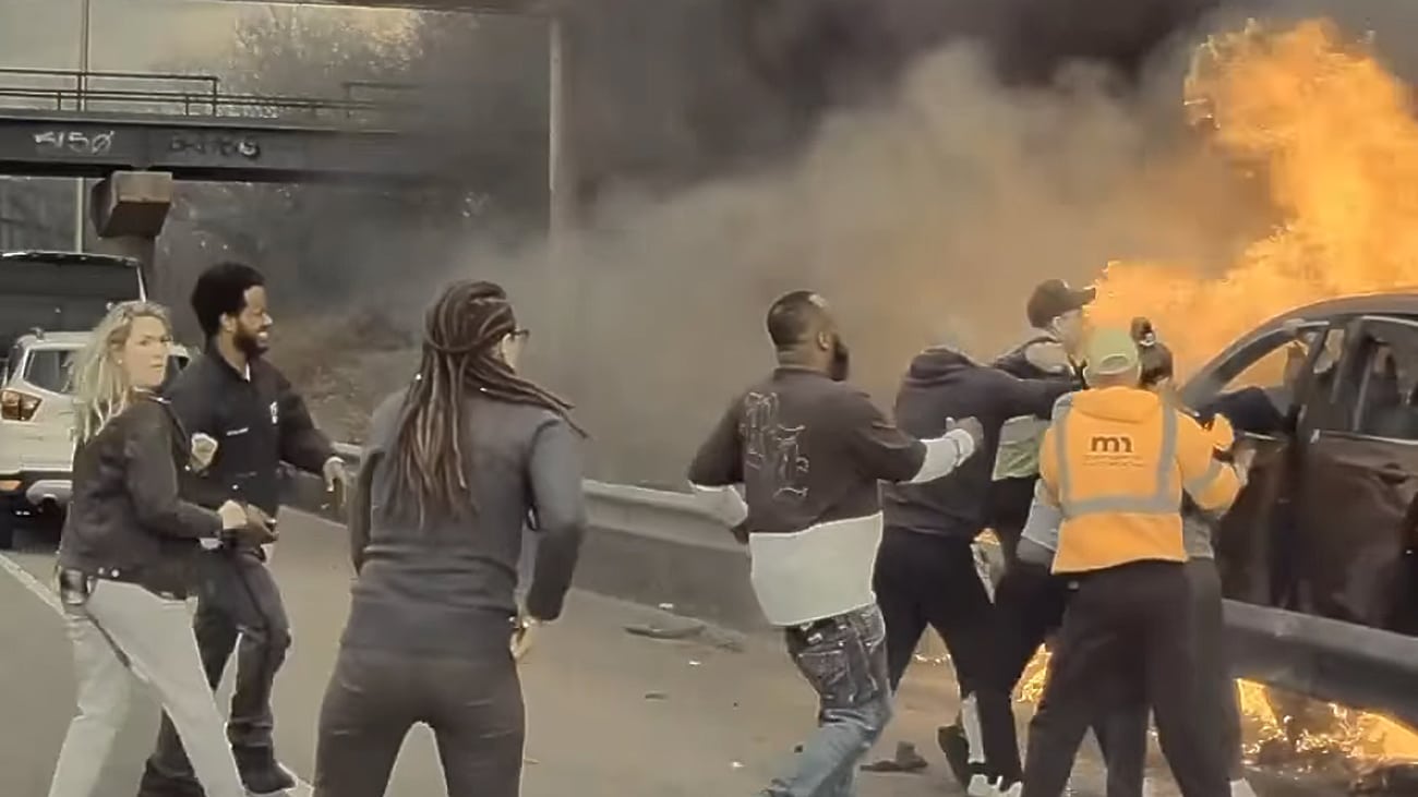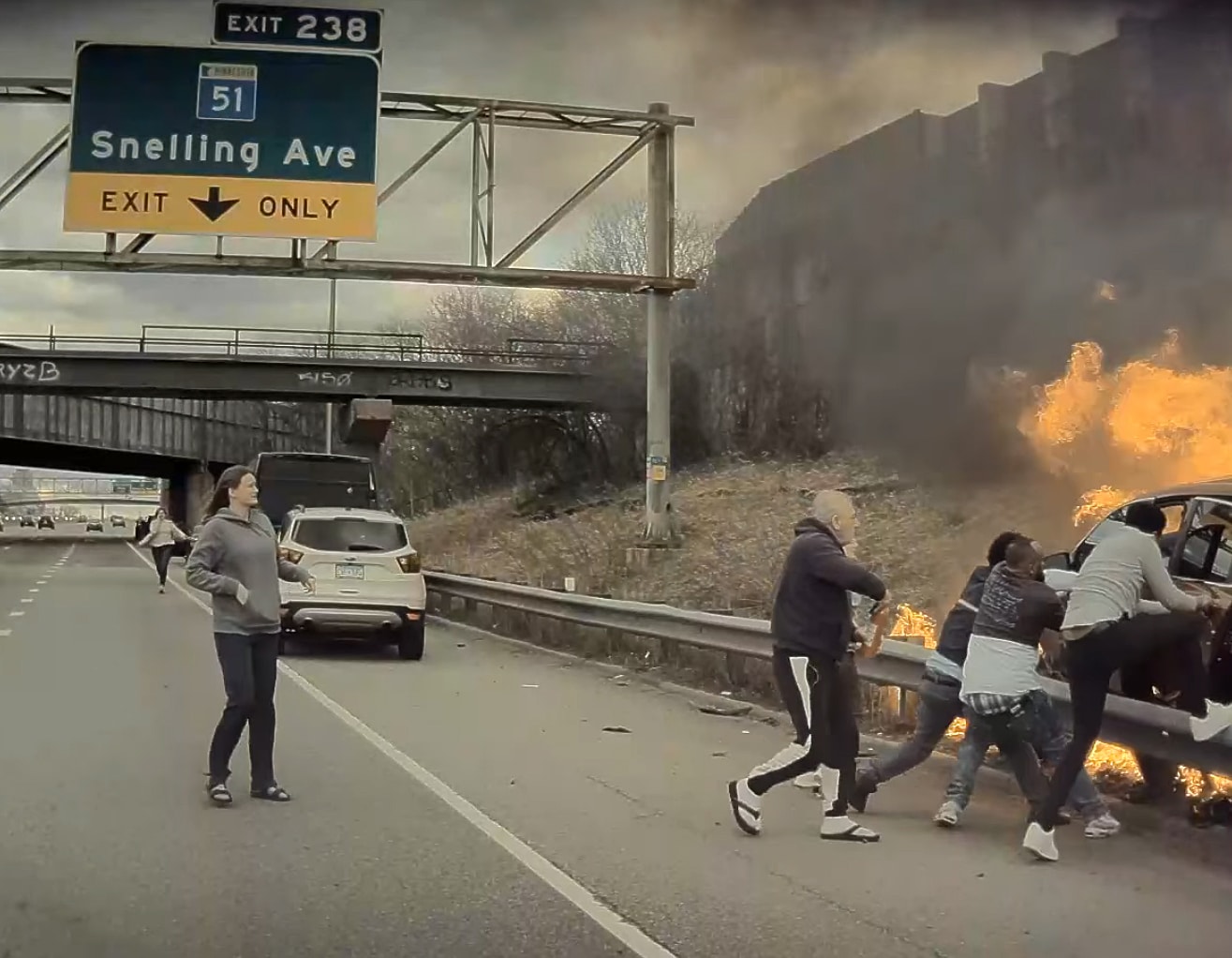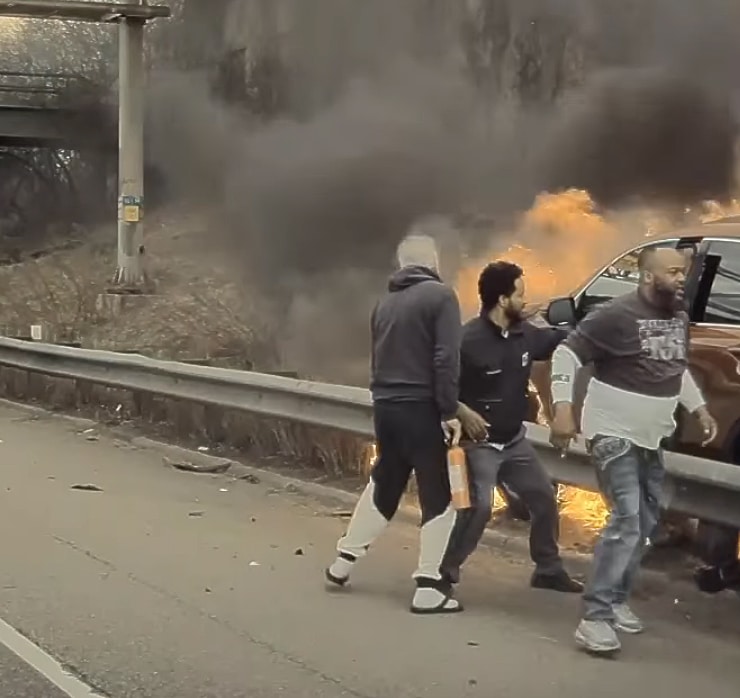 Když se plameny začaly šířit, do akce vyrazilo několik kolemjedoucích řidičů, kteří zastavili a běželi na pomoc. Snažili se horečně vyprostit řidiče, který byl uvězněný uvnitř a navíc otřesený po předcházející nehodě. Silné zplodiny, rostoucí horko a blížící se nemilosrdné plameny jej mohly zabít.