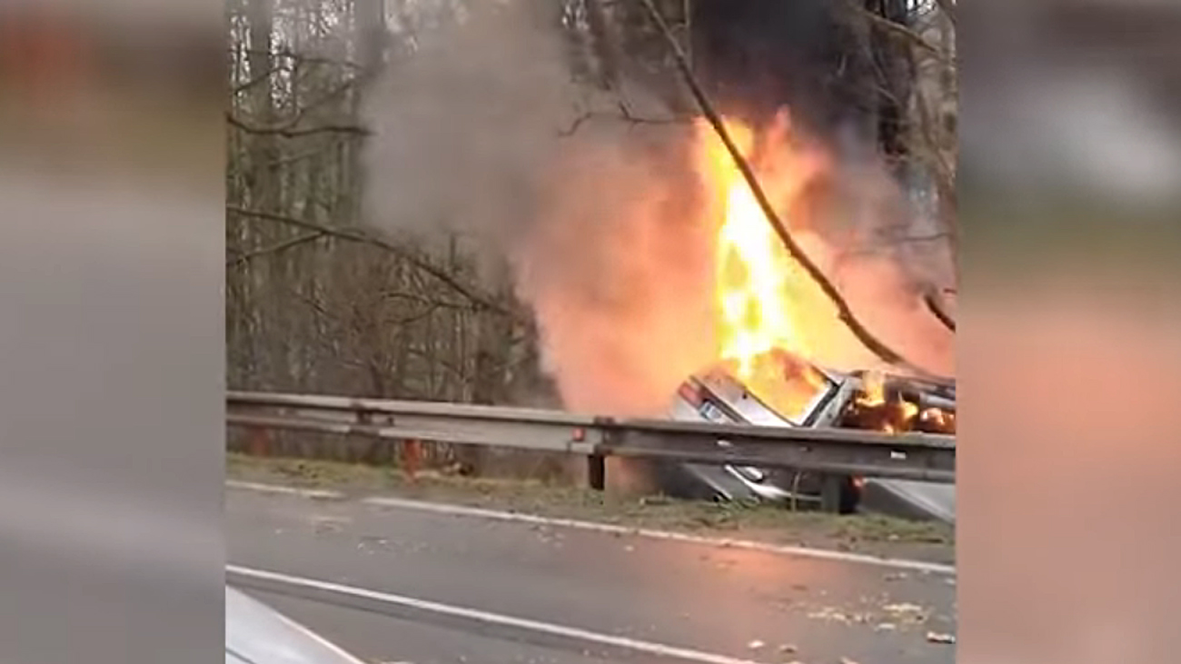 VIDEO: Dramatická nehoda u Svitav! Řidička usnula, nabourala a auto jí shořelo!