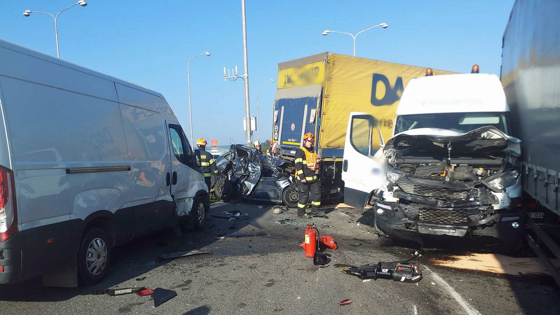 Hasiči Jihomoravského kraje uvedli, že na místě je nabouraných pět osobních aut, dvě dodávky a tři nákladní vozy. „Naštěstí jsme nemuseli nikoho vyprošťovat,“ dodali hasiči s tím, že evidují čtyři zraněné lidi. A je to skoro zázrak, některé osobní vozy jsou totiž zcela zdemolované.