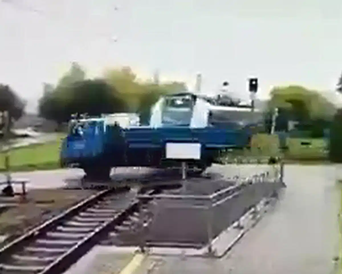 Záběry ukazují jak nákladní vůz zřejmě naložený zřejmě uhlím přijíždí po silnici na železniční přejezd bez závor v okamžiku, kdy se k němu blíží osobní vlak. Řidič si nejspíš vlaku nevšiml, anebo neodhadl jeho rychlost, než totiž stačil přejezd přejet, souprava nabrala zadní část vozu.