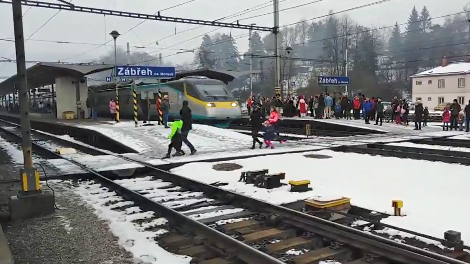 Video: Lidé v Zábřehu na Moravě vběhnou před přijíždějící pendolino.