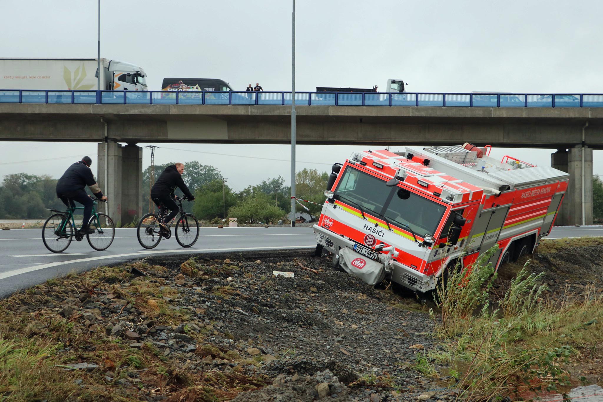 Tatra projede všechno, ale tentokrát bylo i toto ikonické auto krnovských hasičů na přírodní živly krátké. Hasiče musel zachraňovat vrtulník. Nyní, když voda opadla, je vidět, kde auto zapadlo.