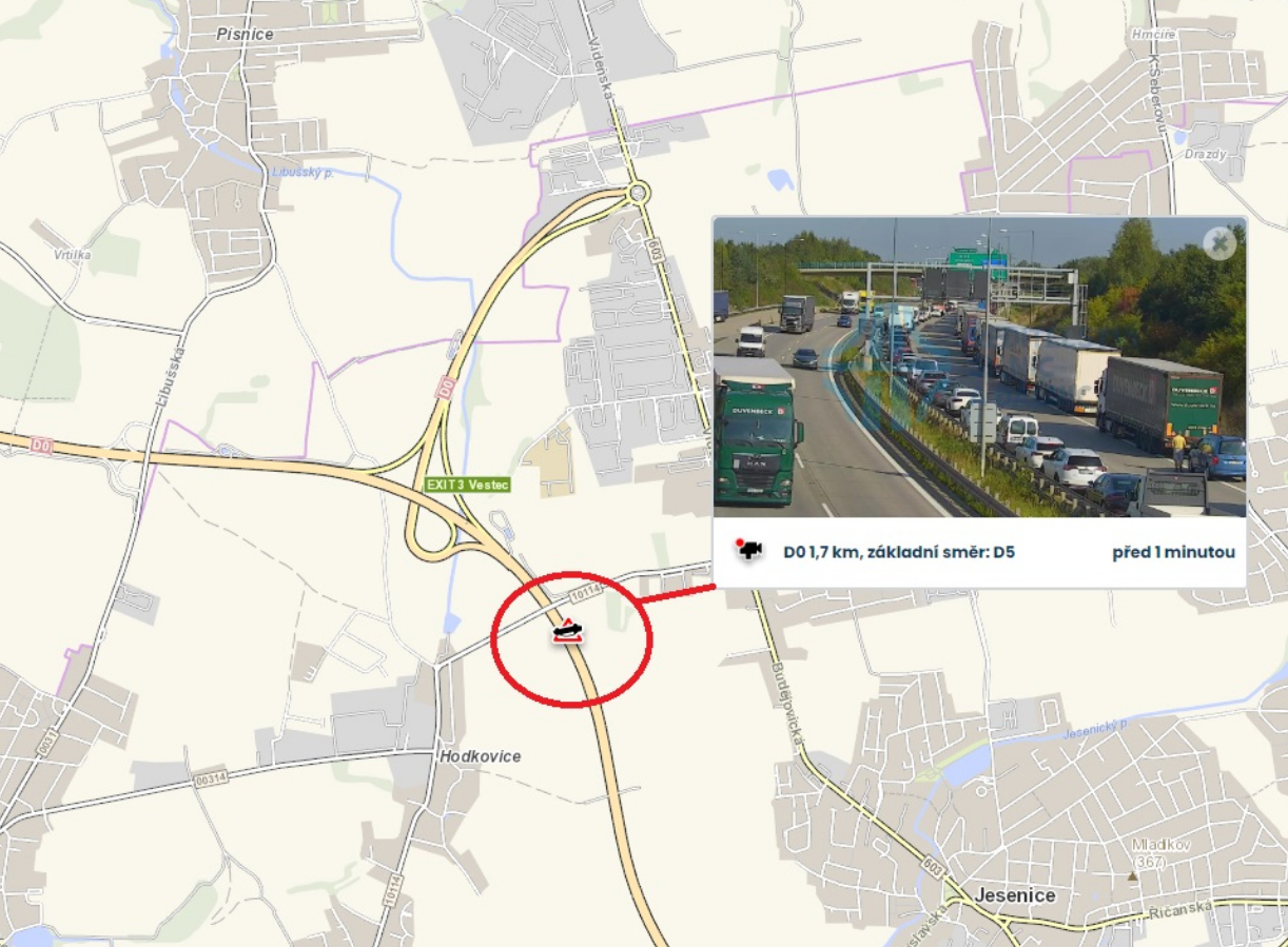 Na okruhu D0 na zhruba 3. kilometru směrem na letiště v Ruzyni, se vytvořily dlouhé kolony. Řidiči musí s ohledem na vyšetřování nehody a odklízení havarovaných vozů počítat do 11 až 12 hodin s omezením.