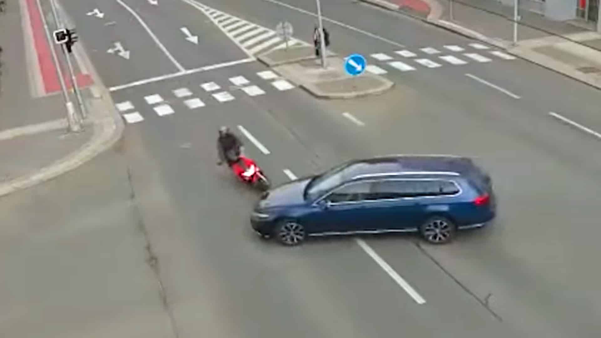 Skupina motorkářů se smekne na mokré silnici, jinému motorkáři nedá přednost osobní auto a další dramatické nehody motorkářů zachytily kamery na českých silnicích.