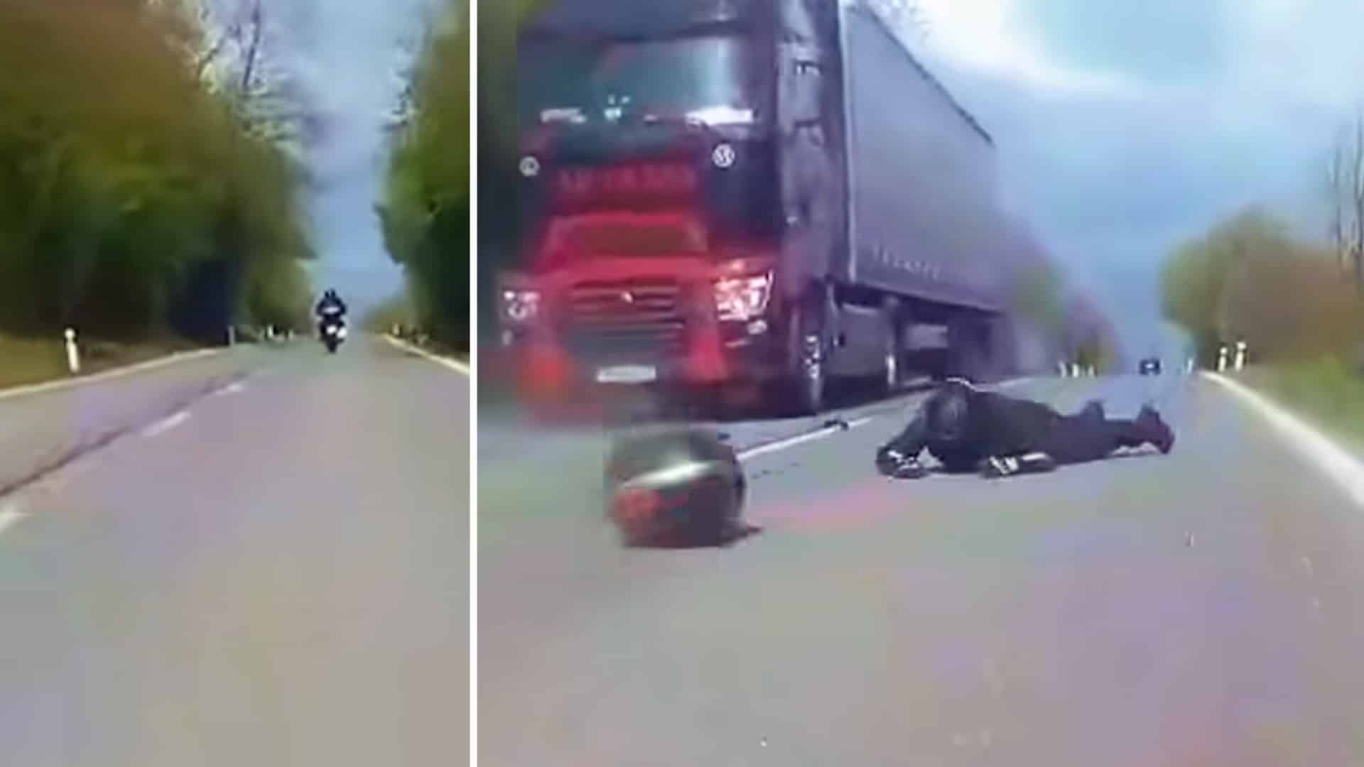 Motorkář po nárazu vyletěl z motorky a video ukazuje, jak dopadá na zem a smýká se po silnici, zatímco motorka se klouže do protisměru, kde zrovna přijíždí kamion. Kamioňák naštěstí stihl zabrzdit, stejně jako řidič auta za motocyklistou, z jehož palubní kamery video záběry pochází. Navzdory děsivému nárazu vyvázl motorkář „pouze“ s lehkými zraněními.
