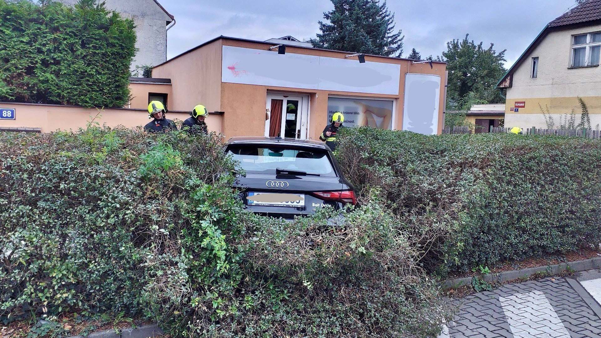 Zdrogovaná řidička bez řidičáku v Praze ujížděla policii, pokácela keř a narazila do domu