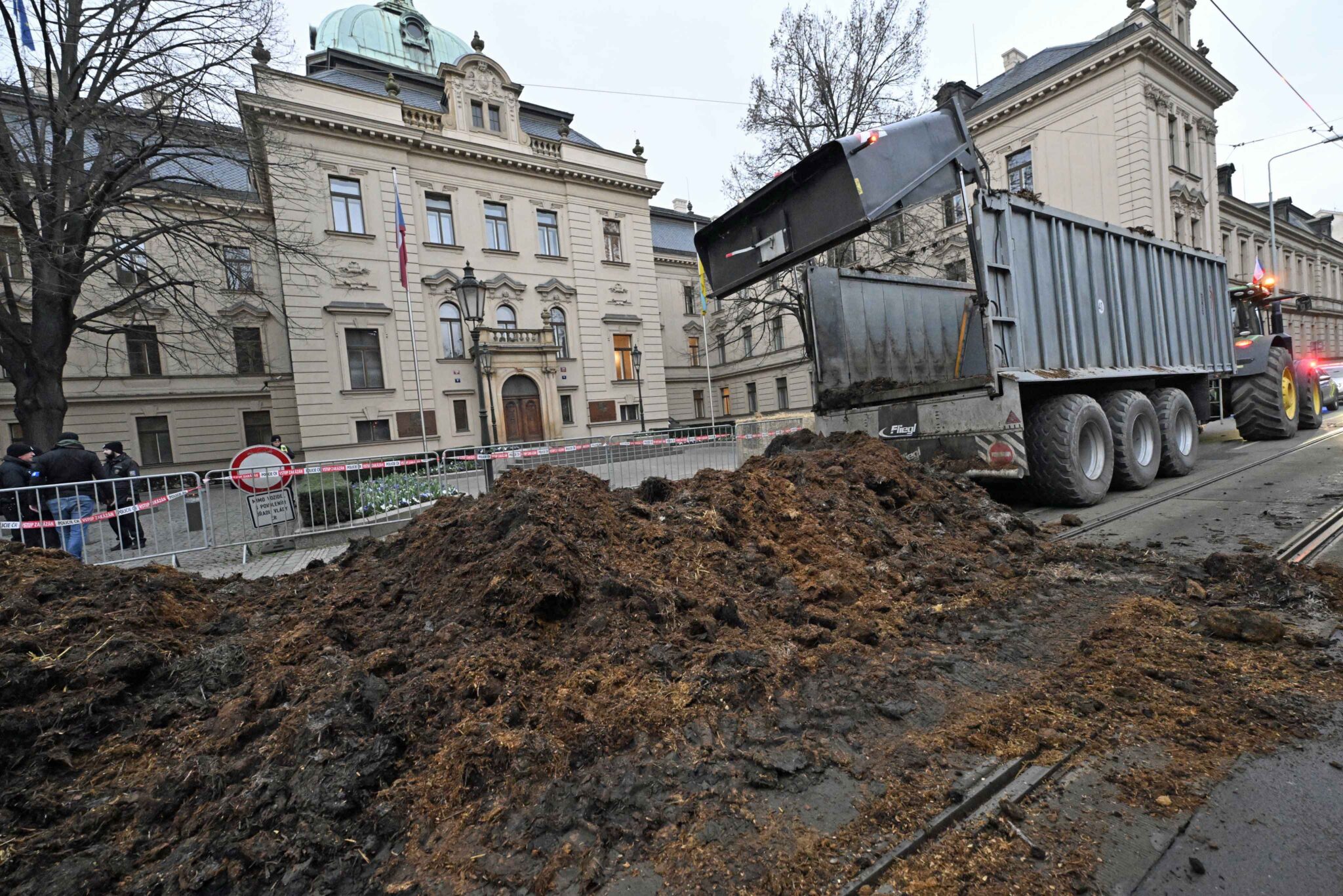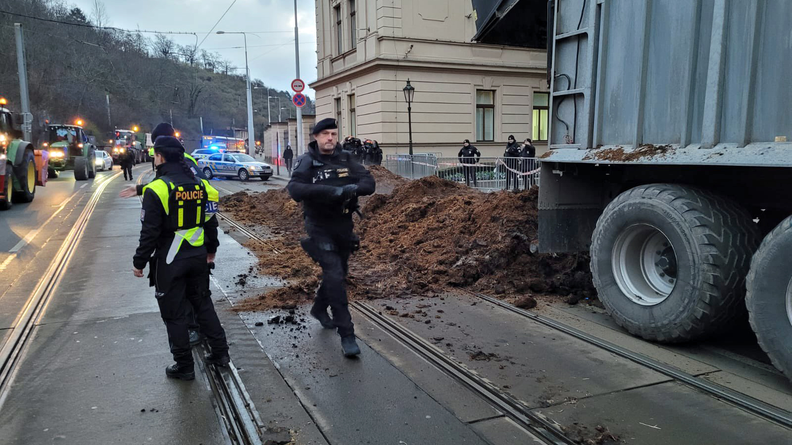 Komplikace dopravy v Praze působí dnešní další protest zemědělců. Ti podruhé najeli do metropole traktory a další zemědělskou technikou. Ve čtvrtek ráno dokonce zemědělci na nábřeží Edvarda Beneše před úřadem Vlády ČR vysypali hnůj.